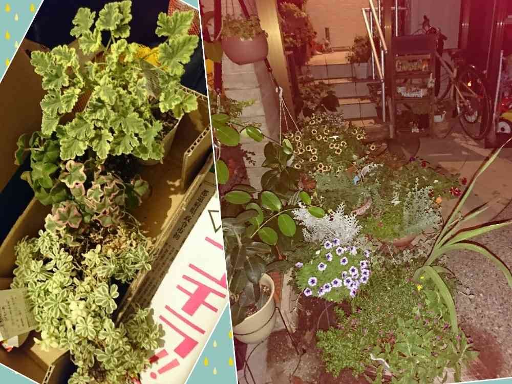 帰って来たら少し風が強くなっていて、心配だから植物さん達を壁に沿わせてみた。