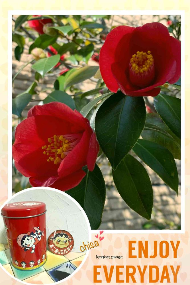 赤い椿ステキだね❤️ペコちゃん色だね。