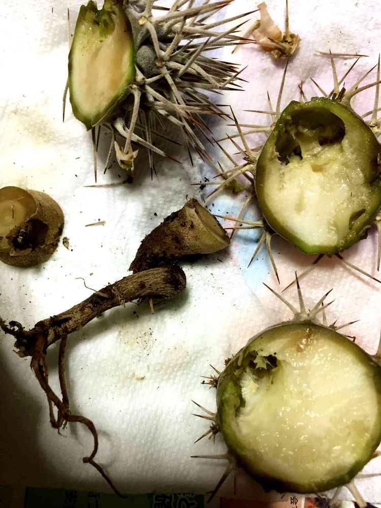 ずっと色が下半分変色してるの気になってて何気ちょっとトゲの隙間を指先で押してみたら・・・え゛え゛え゛〜💦
