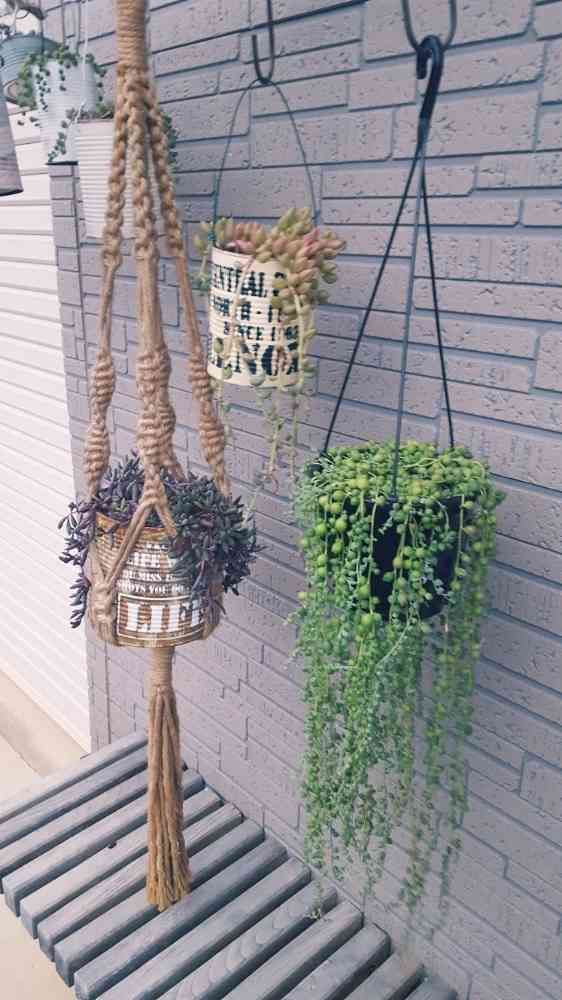 この画像の子達の他に、斑入りグリネ、エンジェルティアーズ、三日月、ピーチ等のネックレスとハートカズラ、レディハート、吊り下げ寄せ植えなどなど。。。物干し引っ掛けておいた鉢がX-<