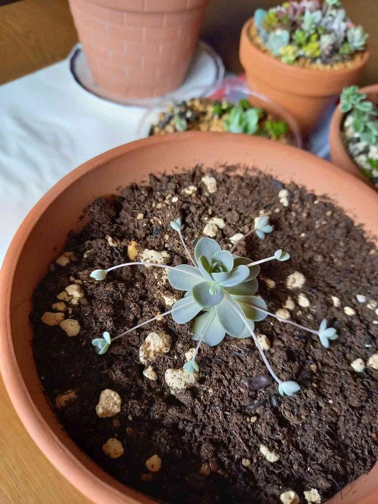 はじめての子持ちレンゲさん、手がいっぱい伸びてきたので、植え替えてみました(^ ^)