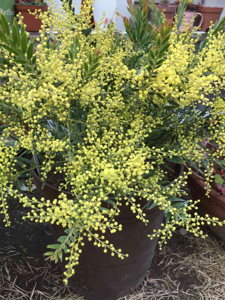 ミモザでしょうか? 魅力的ですよね〜💕 うちのは アカシア シルバーワトルが有るのです ミモザの仲間のはずなんですが 花を見たことが ないのです(^∇^) 葉っぱの形が 良かったんですよね〜 無事育つことを 祈ってます 🙏