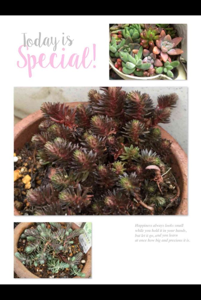 写真は、多肉を挿したもの、名前わからないけど銅葉が気に入ってるセダムと、もう一つセダム。