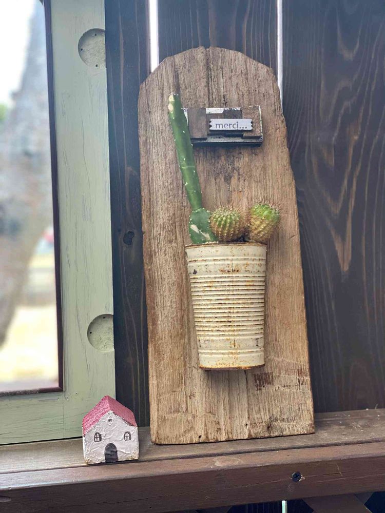古材に錆びリメ缶&🌵
