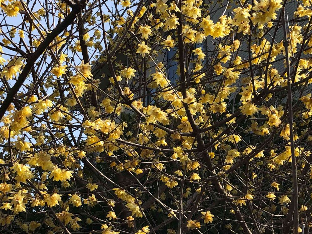 2月中旬、砥上町の農家の塀を越える様に、大きくせり出し、沢山の花🌼🌼🌼を付け、甘い香りを漂わせ、淡い黄色が優しい「ロウバイ」