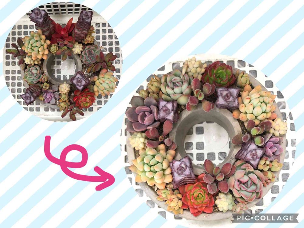 今日は伸び伸びになったセメントリースの寄せ植えの仕立て直しをしました😊