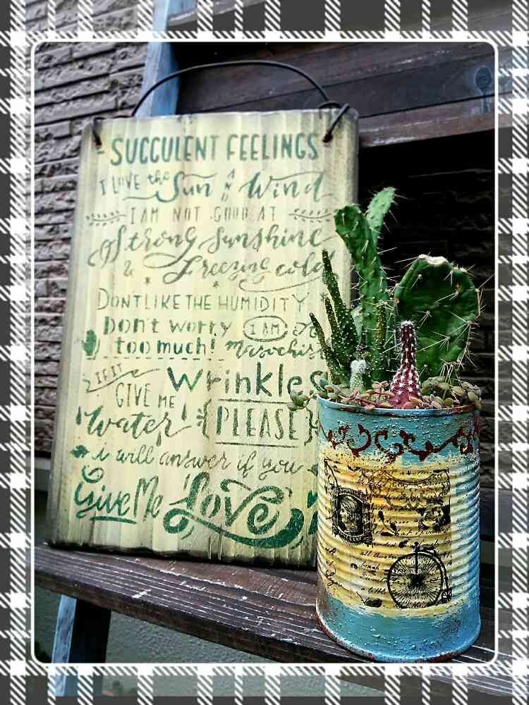 トゲトゲの長いサボテンが折れたら曲がったりしたのでリメ缶に寄せ直ししました。