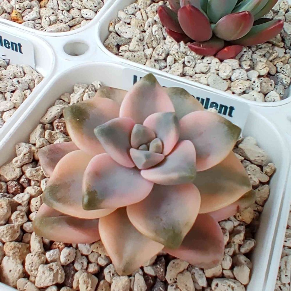 あら?家の美人さん…茎から脇芽、1つ。後は…葉押しが極々小さなのが1つ。なぜこんなにも違うのでしょう🌱❔。頑張ってもらいたい‼️