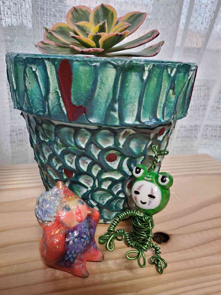 えりおさんの恐竜鉢と、シエラチャンのカオナシ🐸がお似合いだね~(///ω///)♪