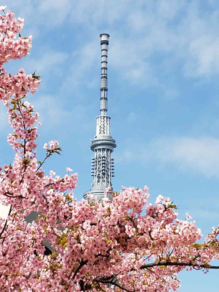 錦糸町の河津桜とスカイツリー