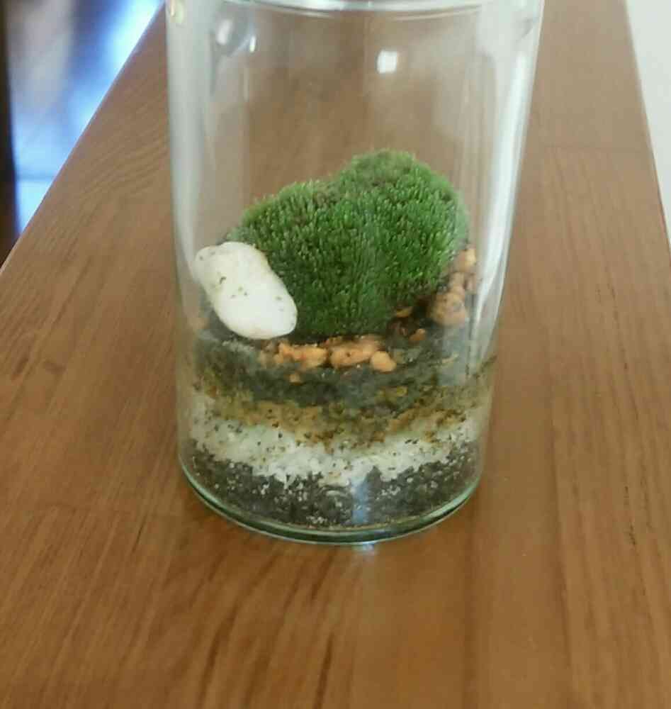前回の投稿の時の子はお☆様になってしまったので、空き瓶に庭の銀苔さんを乗ってけてみました🌱