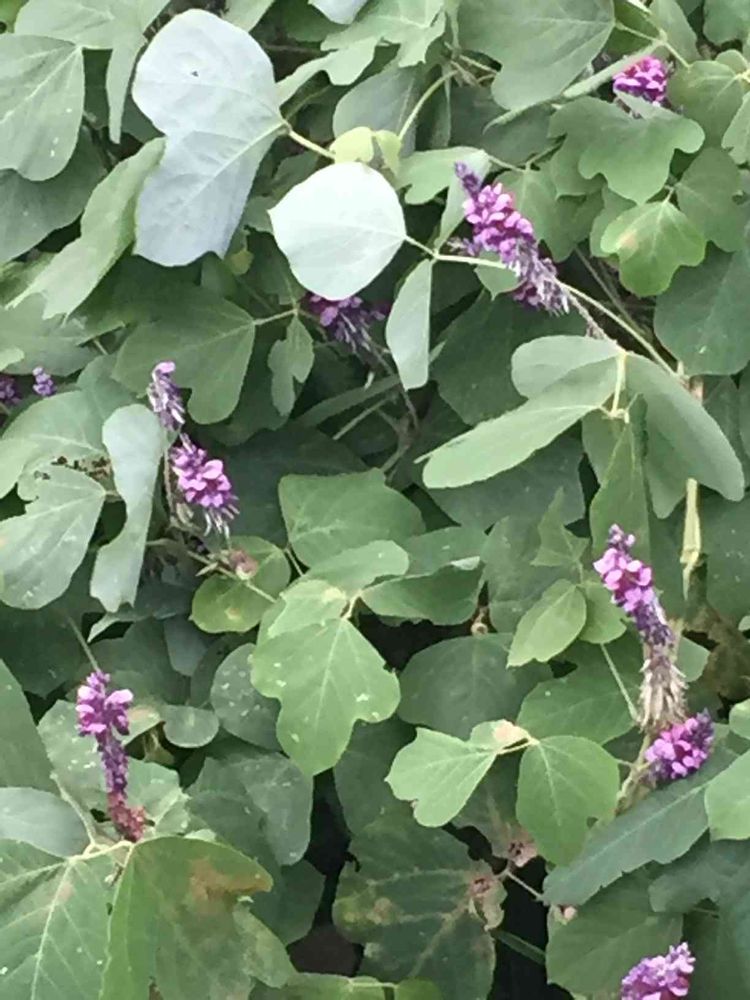 家の裏山の木々をつるでおおい、濃紺紫色の花を咲かせています。秋の七草の一つて、カズラ(蔓)とも。