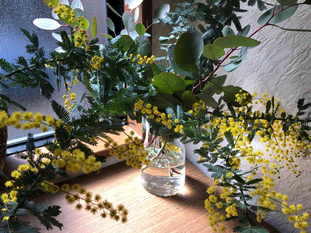 お家のミモザ💛どんどんふわふわが増えていく🎶ユーカリポポラスさんもご一緒に✨