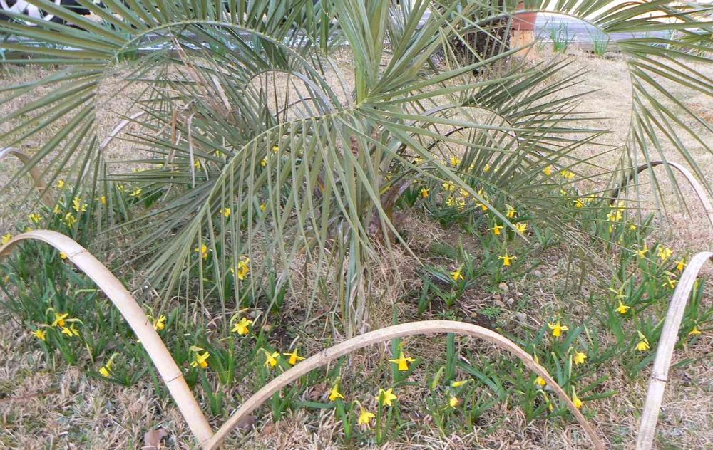 小さなティタティタをココスヤシの周りに咲かせた
