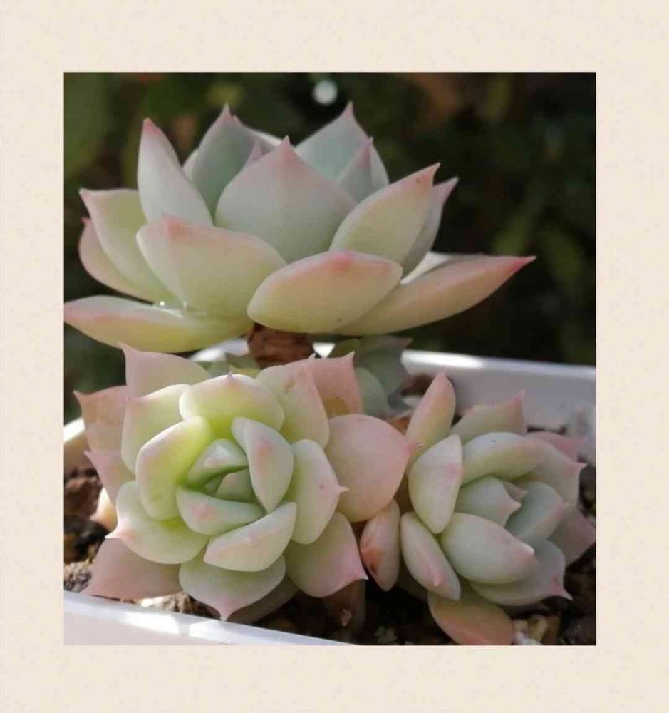 ファンクィーンさん、薄いぴんくで、中心が薄いグリーンでとても可愛いですね。春らしい色合いが素敵な多肉さん。