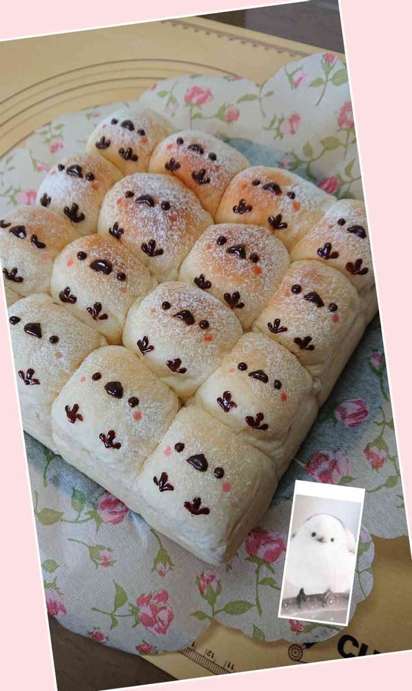 ちぎりパンにチョコペンで顔を描くだけで、あっと言う間にシマエナガちゃんの完成で~す🎶