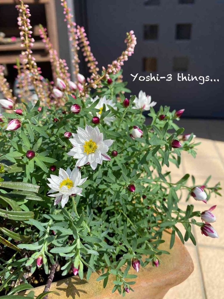 寄せ植えの中のペーパーカスケードが咲いてきました✨