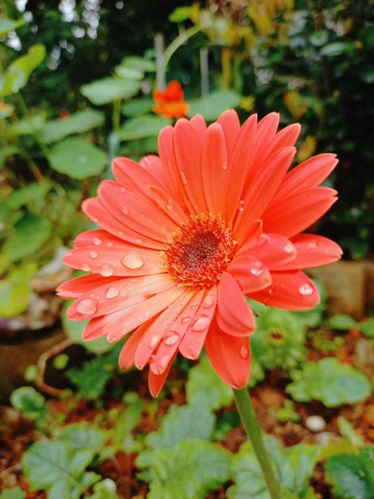雨粒がついたガーベラが輝いて見えるので、気分も⤴️しますね💖