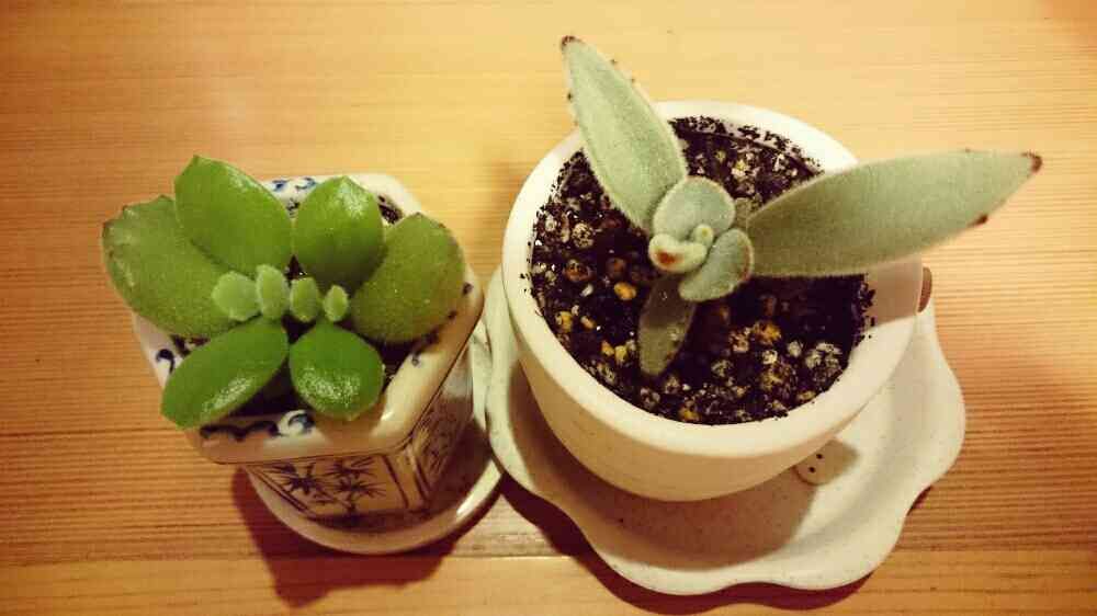 ぷっくぷくの熊童子さんと、今にも飛び立ちそうな月兎耳さん。