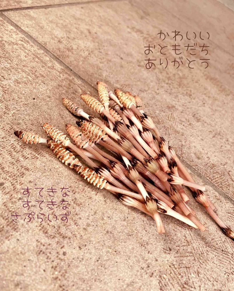 玄関前につくしの束が、、