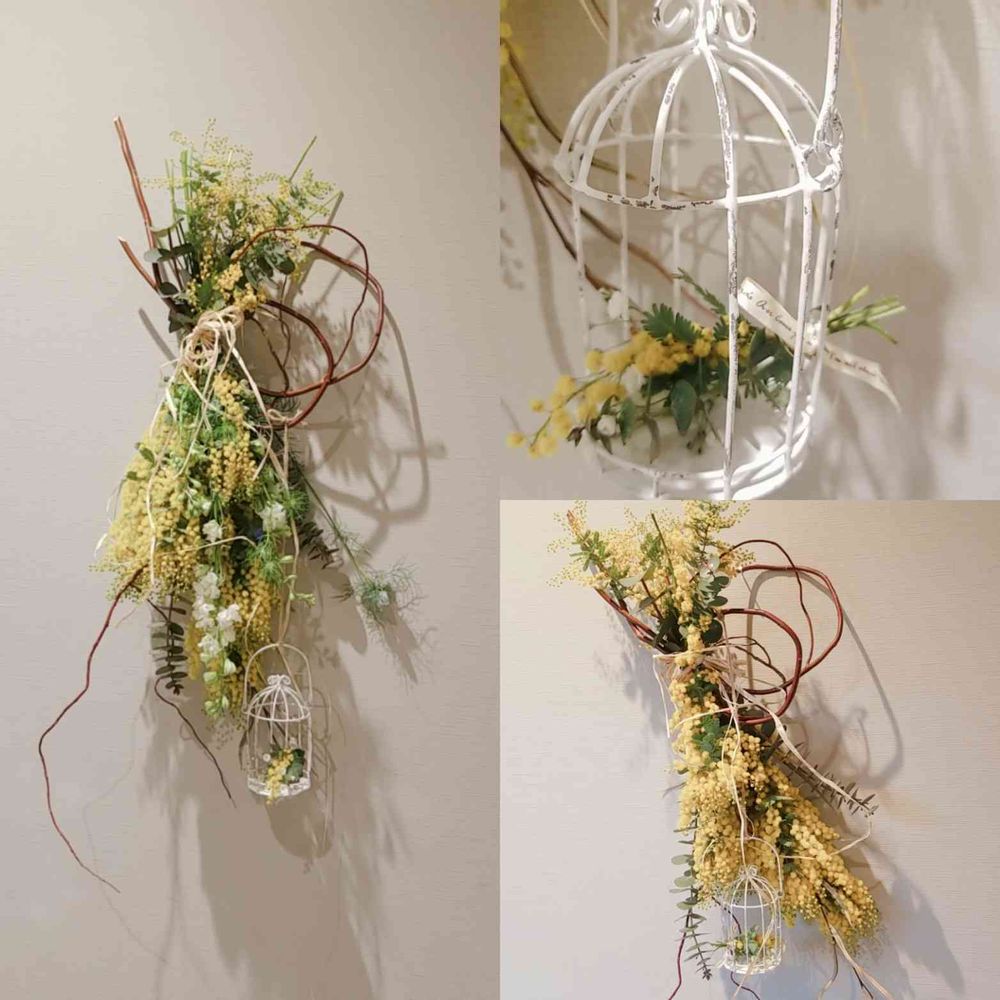 全長1mのミモザの壁飾りはとてもゴージャス✨