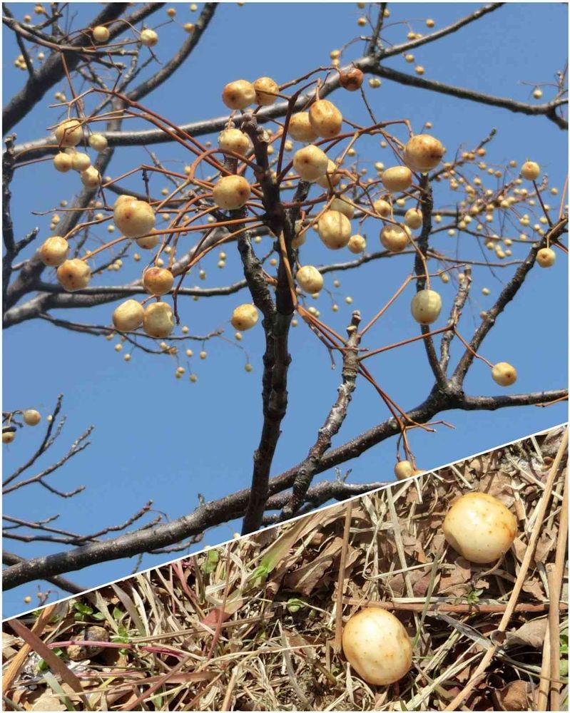 薬用植物として、実はしもやけ、樹皮は虫下し、葉っぱは虫除けとして重宝されて来ましたが、実にはサポニンなどが含まれており、食用にはなりません。