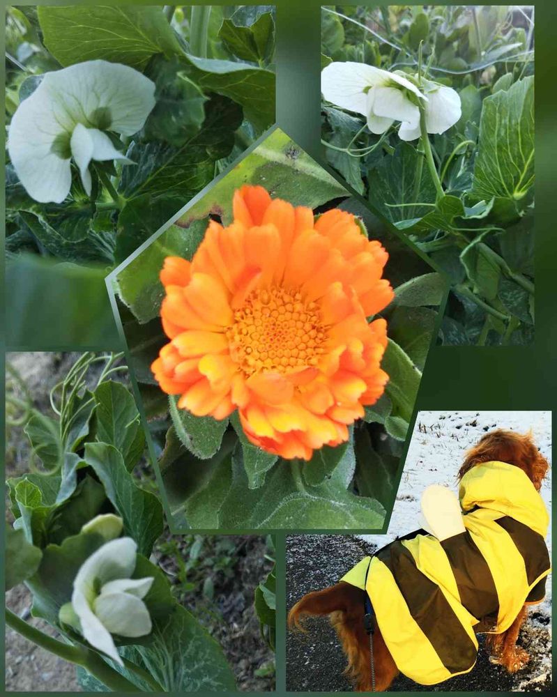 スナップエンドウの花,キンセンカ(金盞花),自分の畑のお花の投稿画像