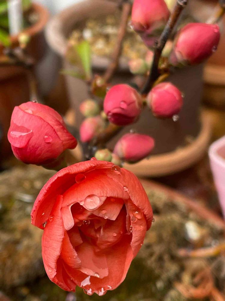 長寿楽(ボケ)、今年も咲いてくれました♪