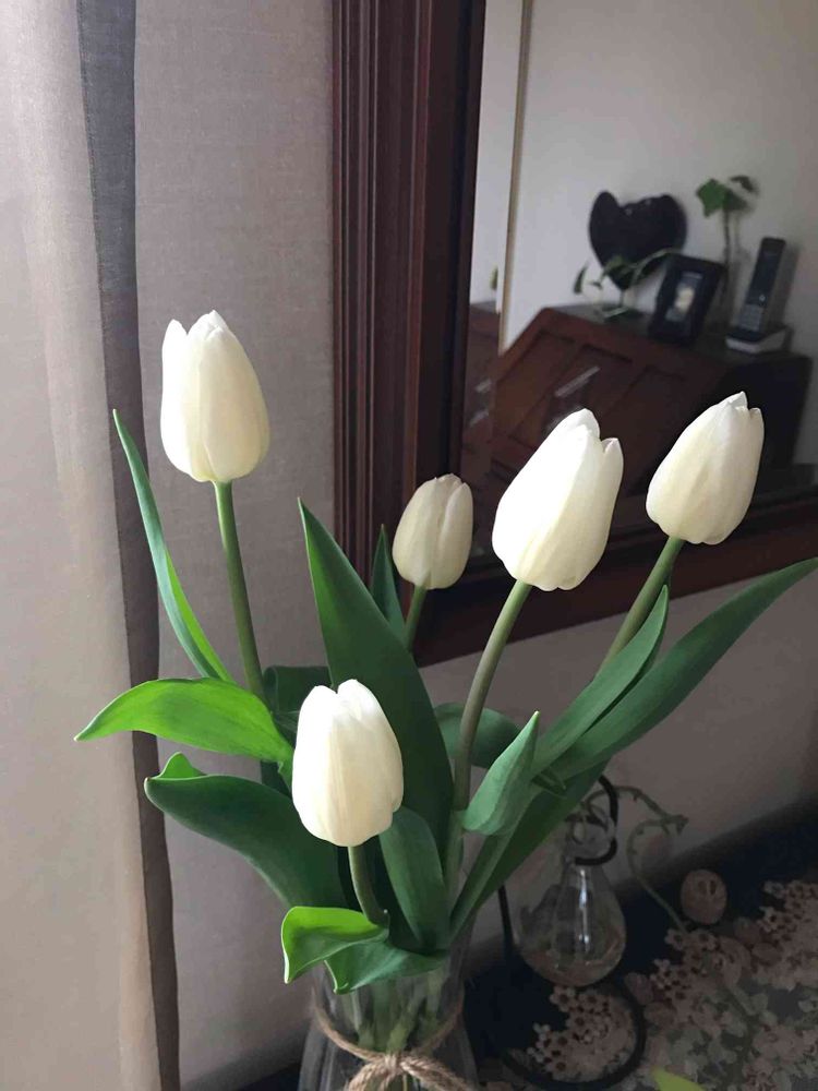 爽やかな真っ白なチューリップ、春らしいですね💕