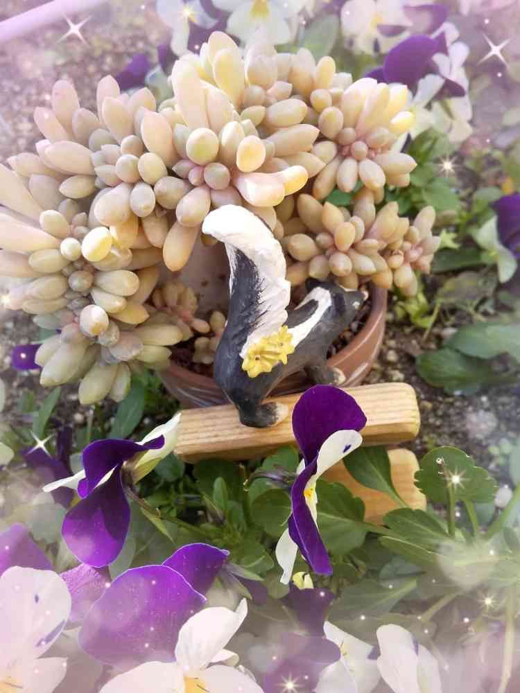スカンクちゃん!のオケツ🦨、かわいいです~💕💕 本当に多肉さんを見に来たみたいに見えますね❣️