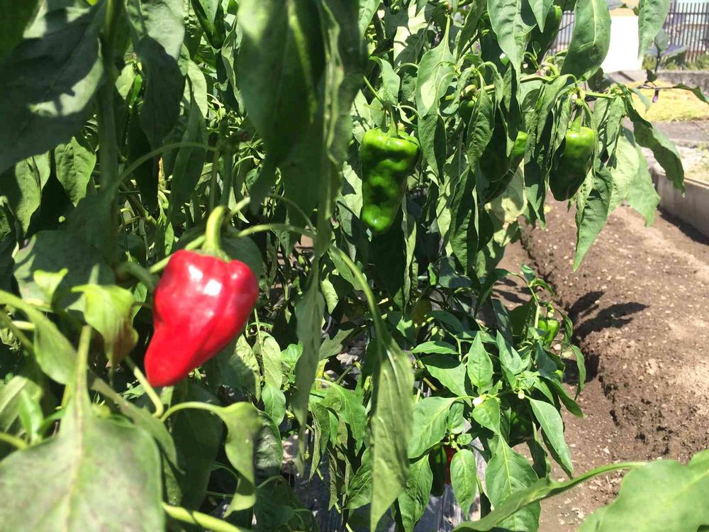 ピーマンは赤くなるまで育てると、体力を消耗して苗が弱るそうです。
