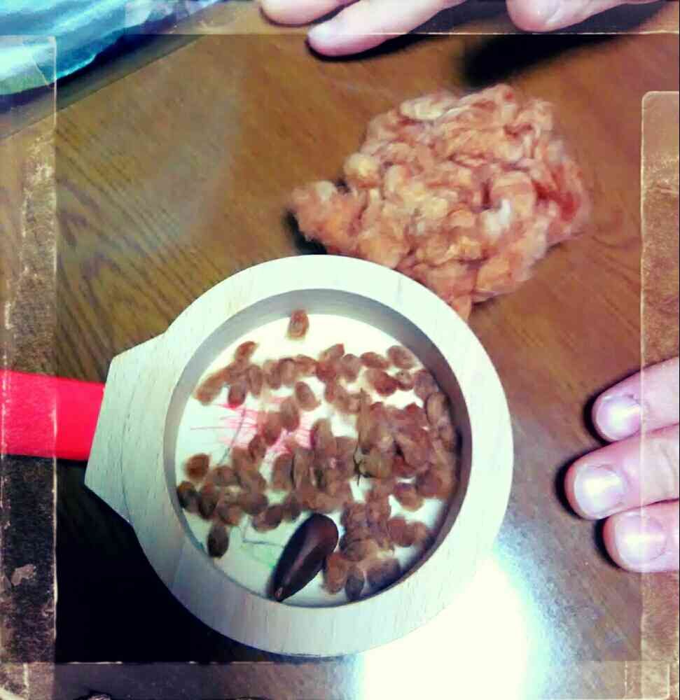 昨夜娘が種を取ると言い出して、今収穫してある分、親子三人で黙々と綿をむしって種を取り出しました😅