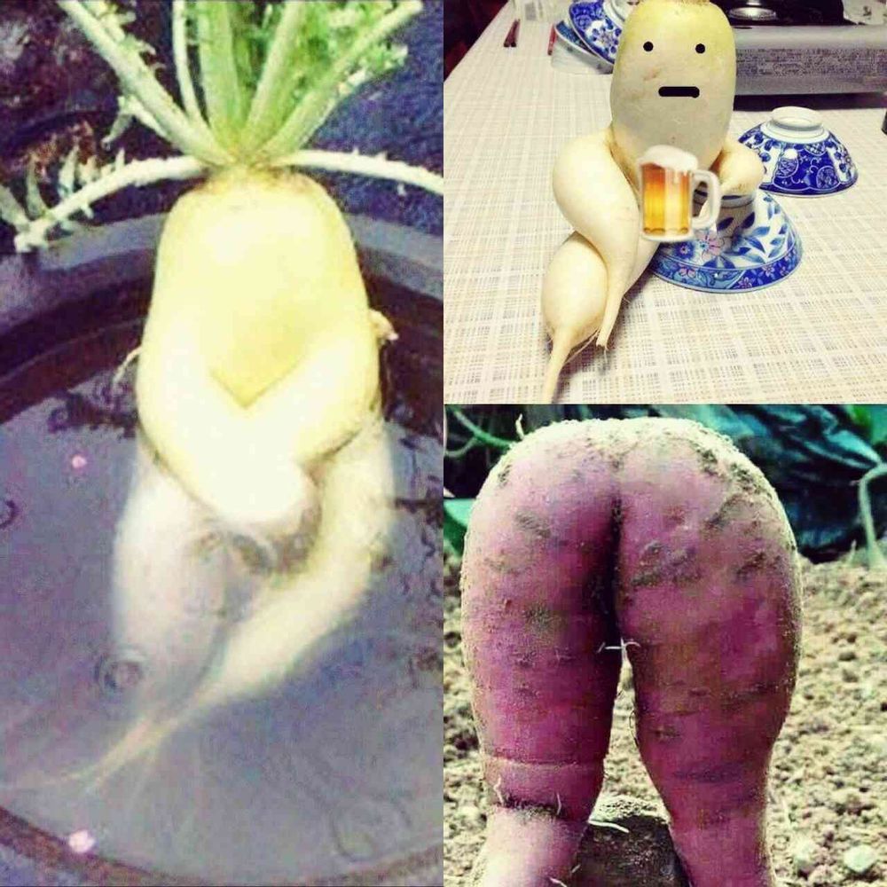 @ケロケロカエル まみりん、すげー、だいこんの写真持ってるんや、顔も両手両足あってね、おちんちんまでついてるんだ。出そうか?って、行ったら、みんながやめろってイメージがあるからって、兄ちゃんが料理長でね、その大根がきたんだって写真くれた。笑えるんで、顔はジョーズみたいに、サメなんだ。