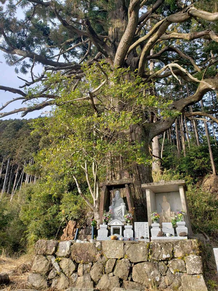 昨日の写真。熊野古道捻木の杉にて❗根元には役行者の像が設置サレテマス。説明書を見ると一度像が盗まれ後に発見されて現在2体の新旧の像になってる模様。