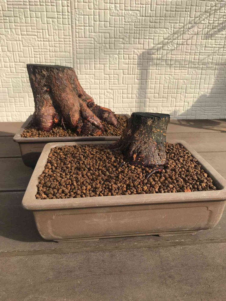 梅の木もこれだけ太い物は鉢植えした事が無いので生命力にかけるしか無いですね😃