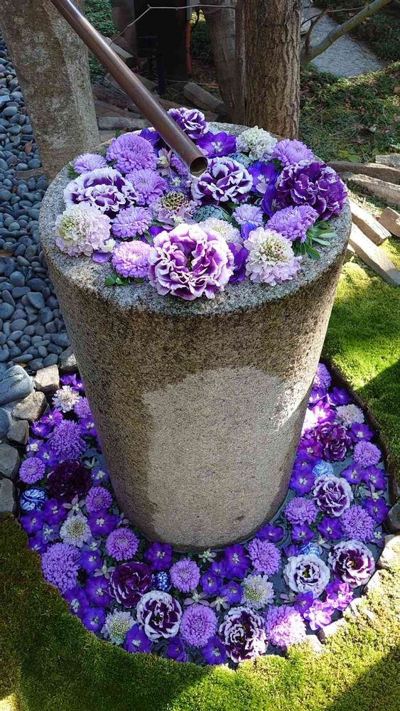 水琴窟,紫のカーネーション,青い花マニアの投稿画像