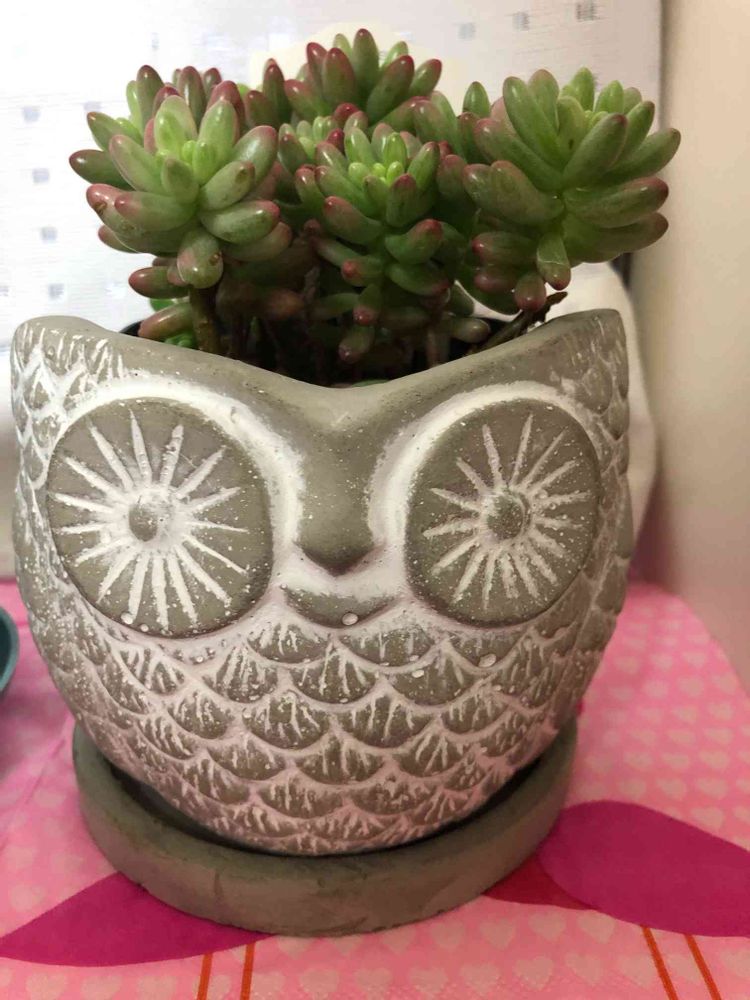 鉢が可愛いので、何かマッチする植物が無いかと園芸店を探し回って、娘の提案で多肉さんに。