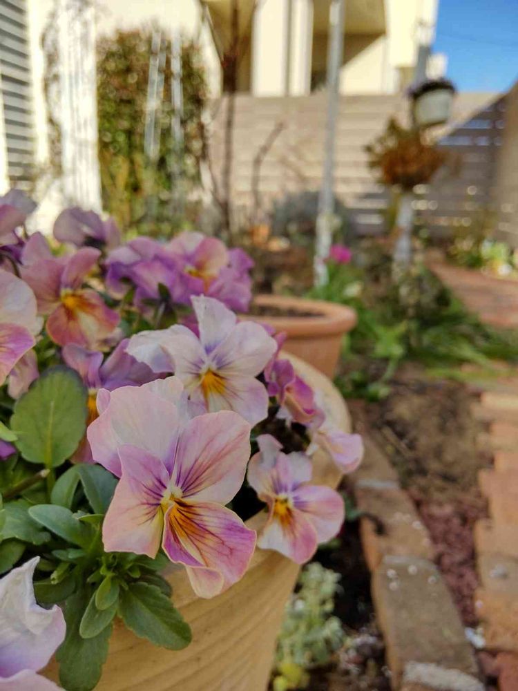 今日はビオラの花柄摘みと庭の草抜き作業。
