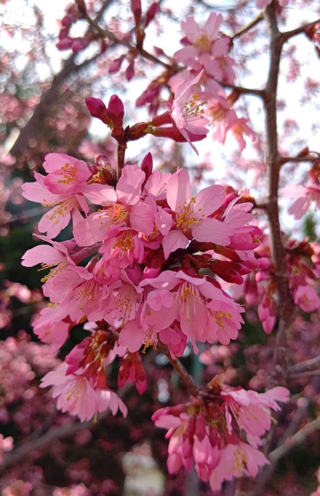 桜🌸も色々種類有りますね👀‼️こちらの公園、確か寒緋桜🌸があったはず・・・と思って捜したけれど見当たらず😅😂この鮮やかな豆桜に出会い、ルンルン🎶