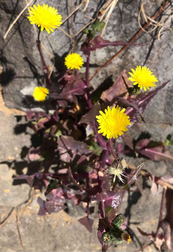 ノゲシでしょうか?土留めのブロックの間からたくましく伸びていました。