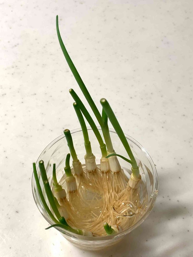 うちのキッチンの窓辺でも小ネギの水栽培がにょんにょん伸びてますよー。いいグリーンだわ💗