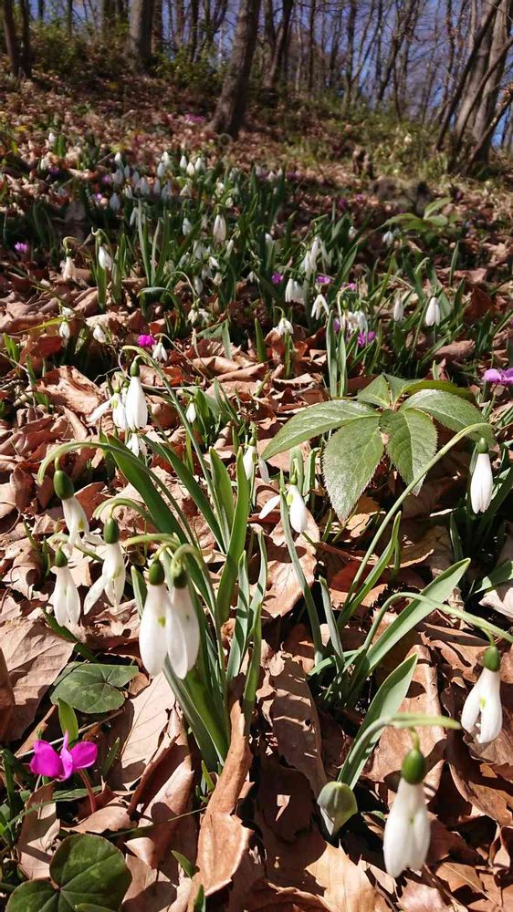 スノードロップは 花壇や鉢で 咲いているイメージしかなかったけど 斜面で 他の植物と一緒に 咲いているのは 可憐さを 凄く感じますね🎵⤴️😀