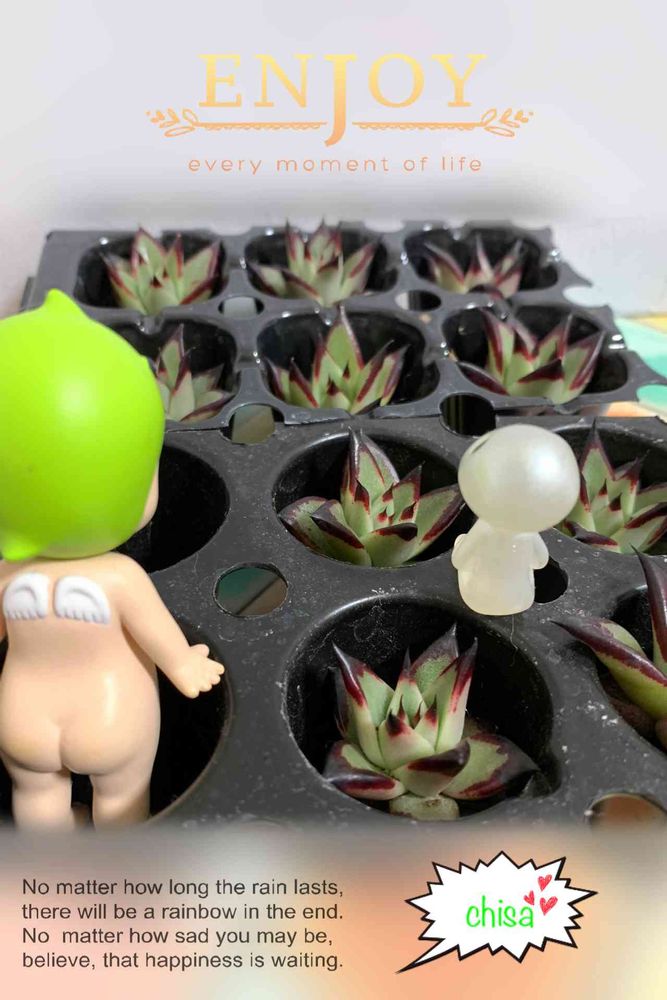 うちの母も、八百屋で6種類入った多肉の寄植えを300円で買って来たの😱