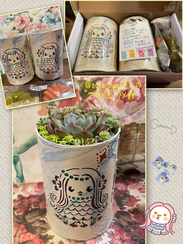 アマビエちゃんの顔がとても可愛いから、思わず2つお迎え。一つは絶対に"アマビレ"を植えたくて、セダムとの寄植えにしました。メッチャ可愛〜〜い♡