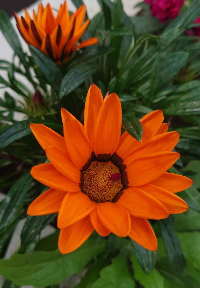 鮮やかなオレンジ色のガザニアの花、綺麗です💕