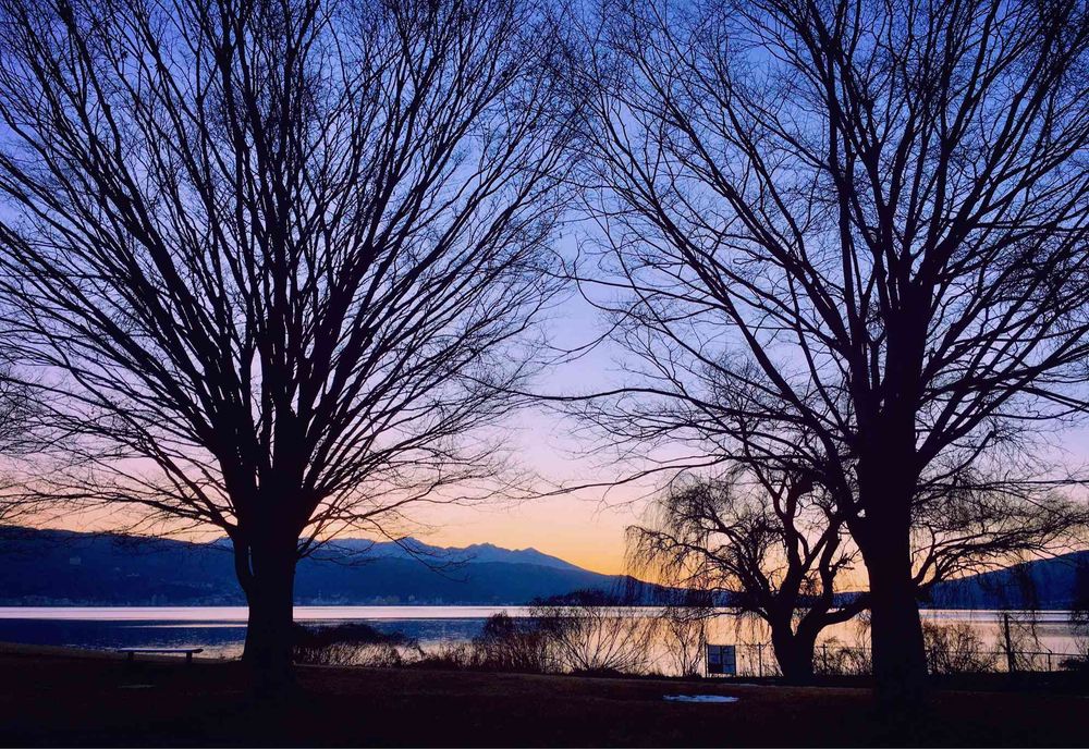 そうですねぇ〜‼️この時間帯は八ヶ岳と手前の並木はシルエットになって、空と諏訪湖が明るく光るので…😊👍✨