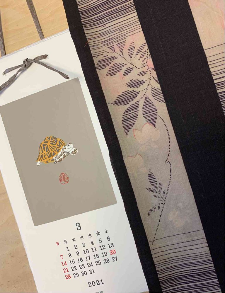 布のお花と日本画のカレンダー🗓は趣きがありますね✨布のお花は夢路の世界にも似ていてロマンですね🎶💞