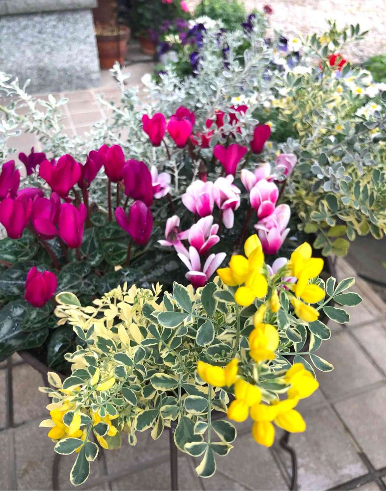 シクラメンの寄せ植えのカラーリーフとして植えたバレンティナのお花が、いつのまにか咲いてました💛🍃