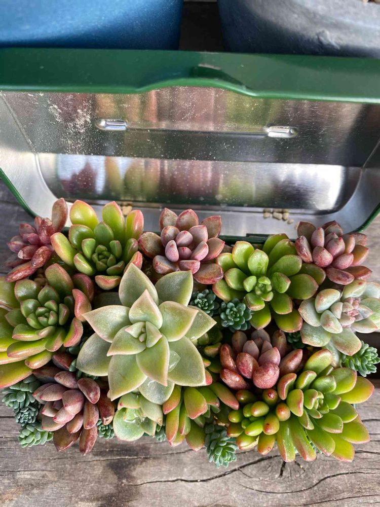 昨日、小さな工具箱風の缶に寄せ植えをしました( ¨̮⋆)