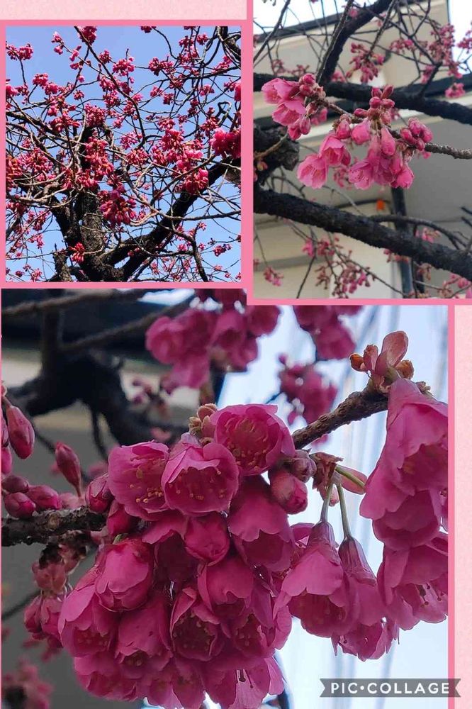 reomamaだワンさんのカンヒザクラ,お散歩の途中,濃いピンクのお花の投稿画像